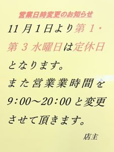 と11/1より上記の定休日となります。